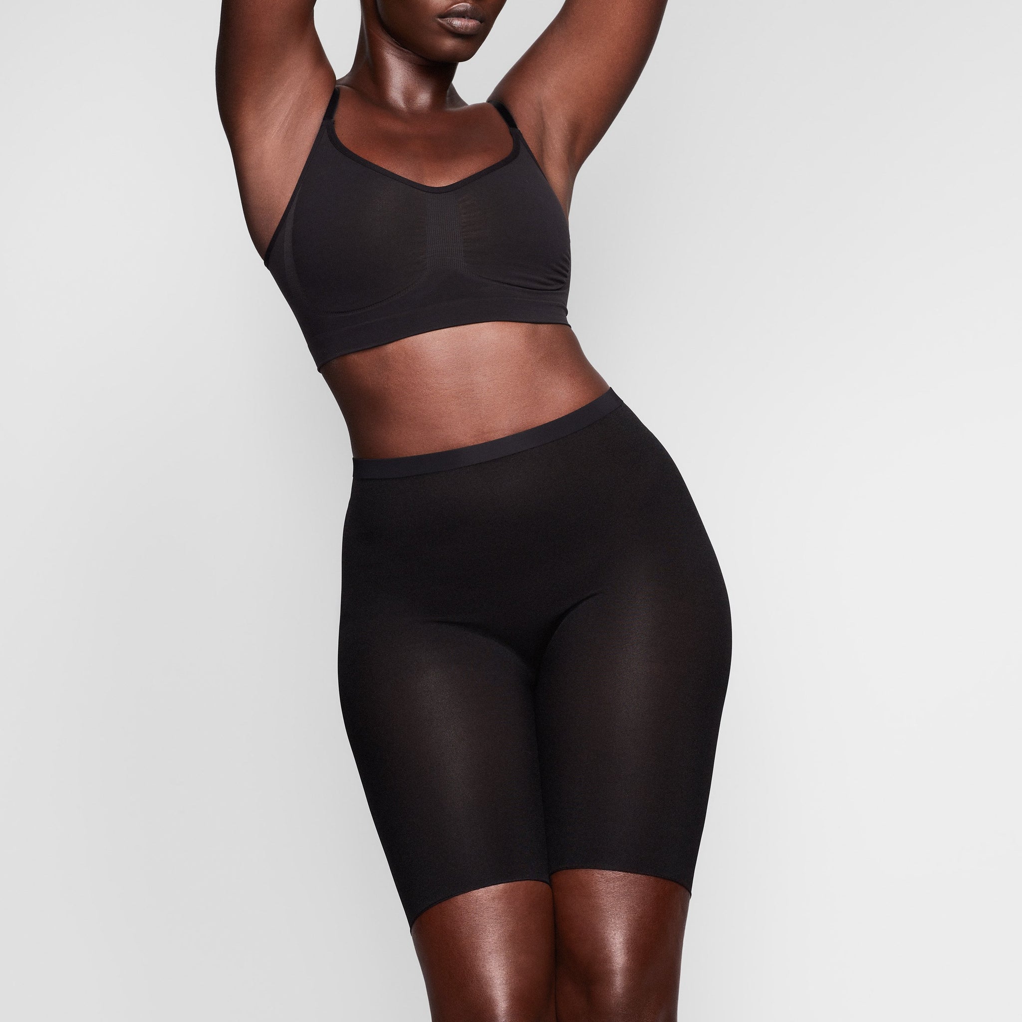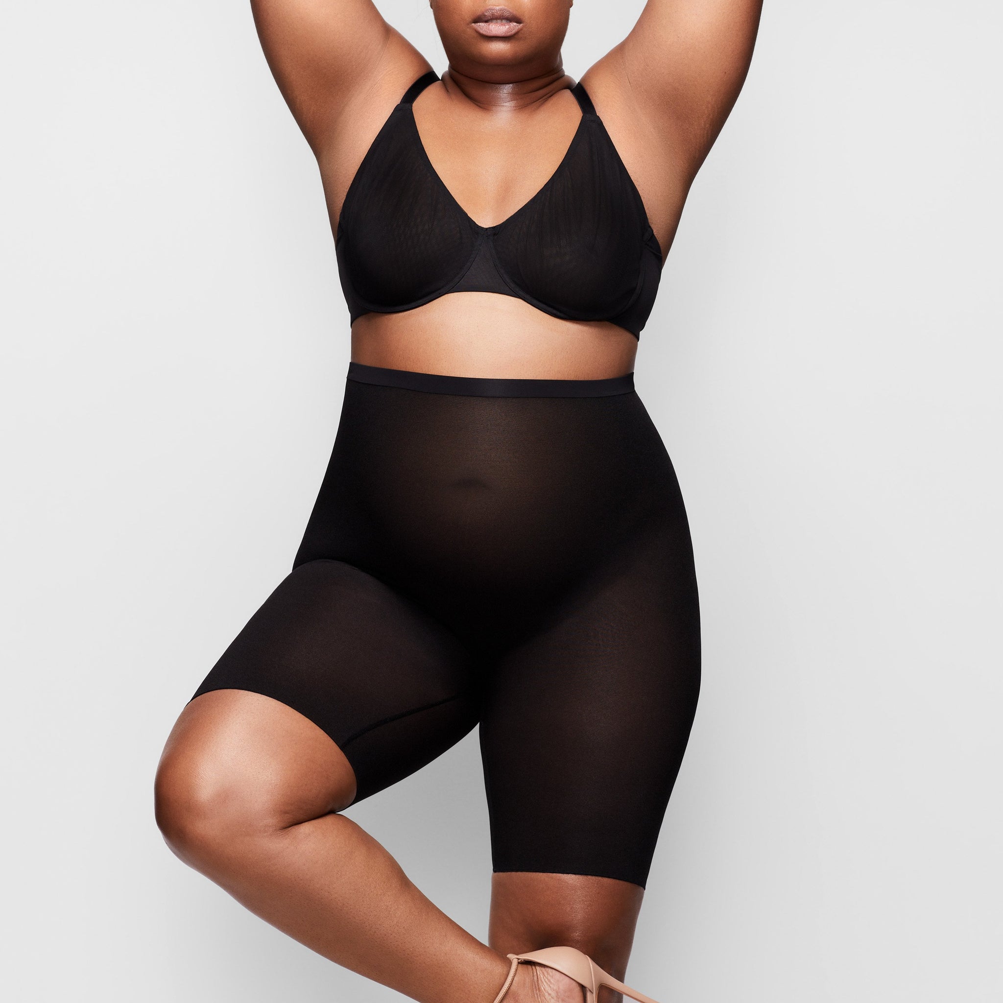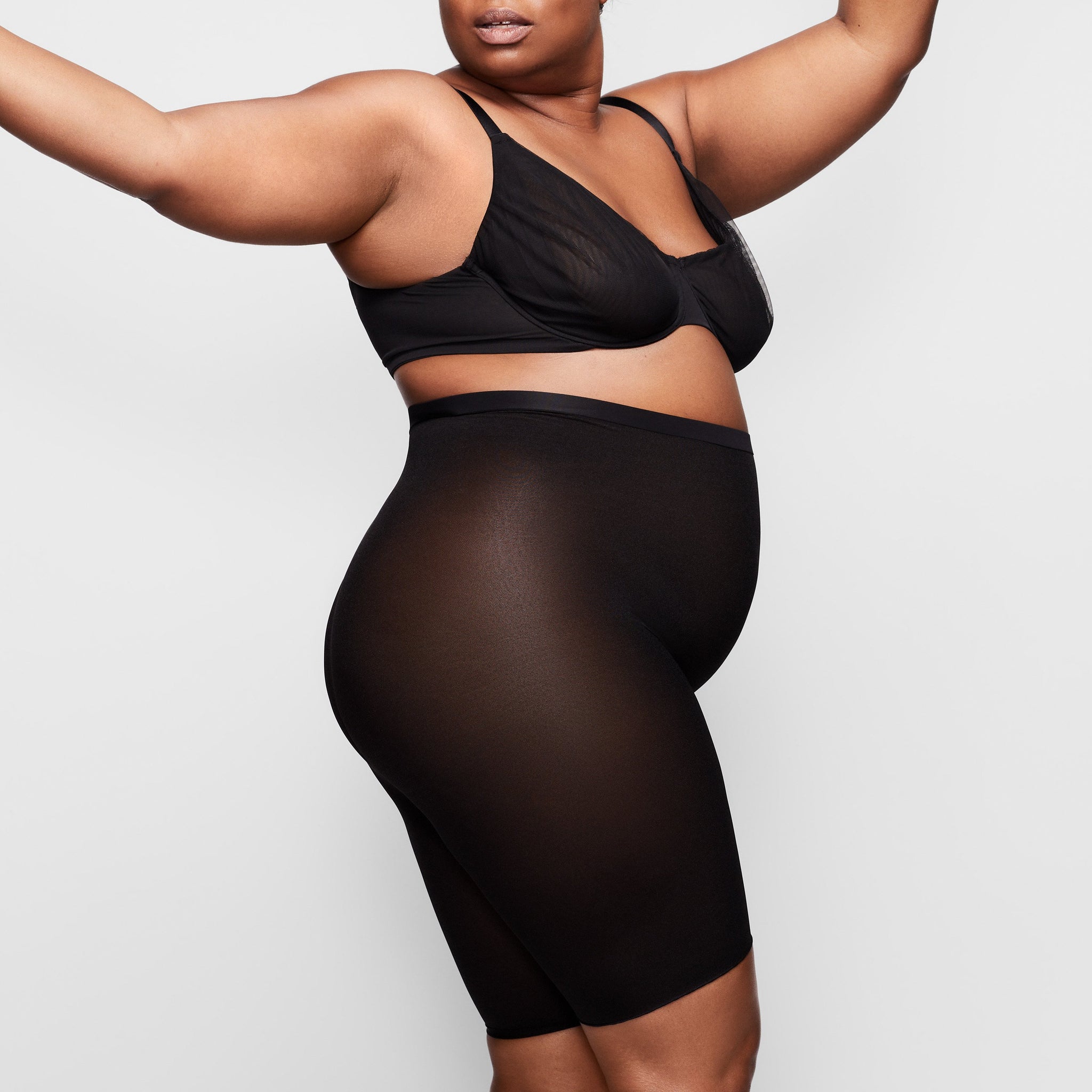 With its mid-thigh length and high-waist rise, this sheer short holds in your core, smooths your thighs, and shapes and lifts your butt. Its silky construction makes this piece an unexpected essential for enhancing your body’s natural shape.