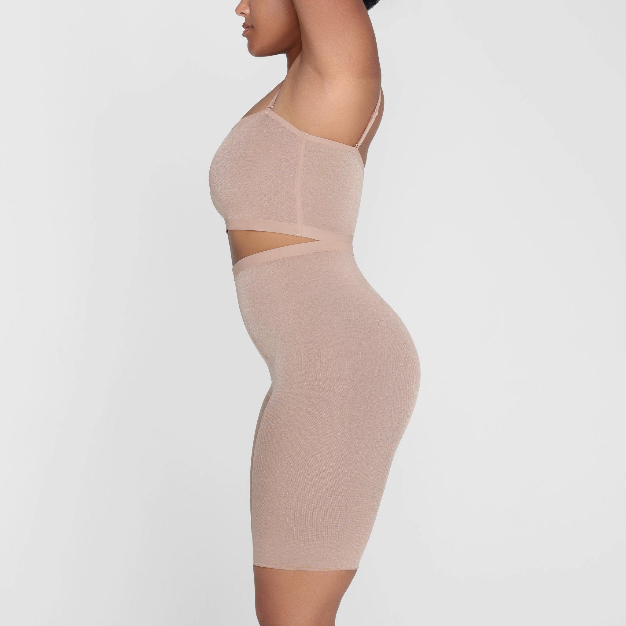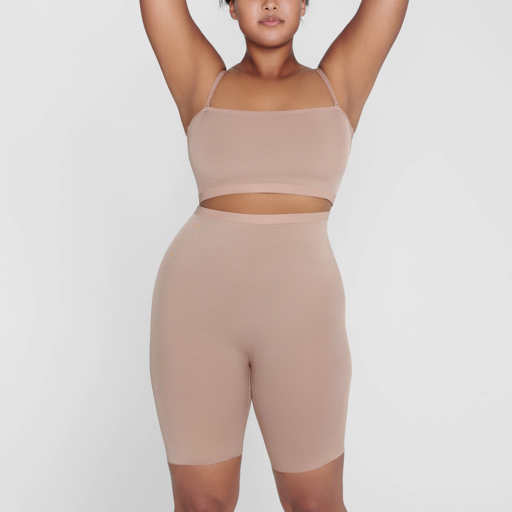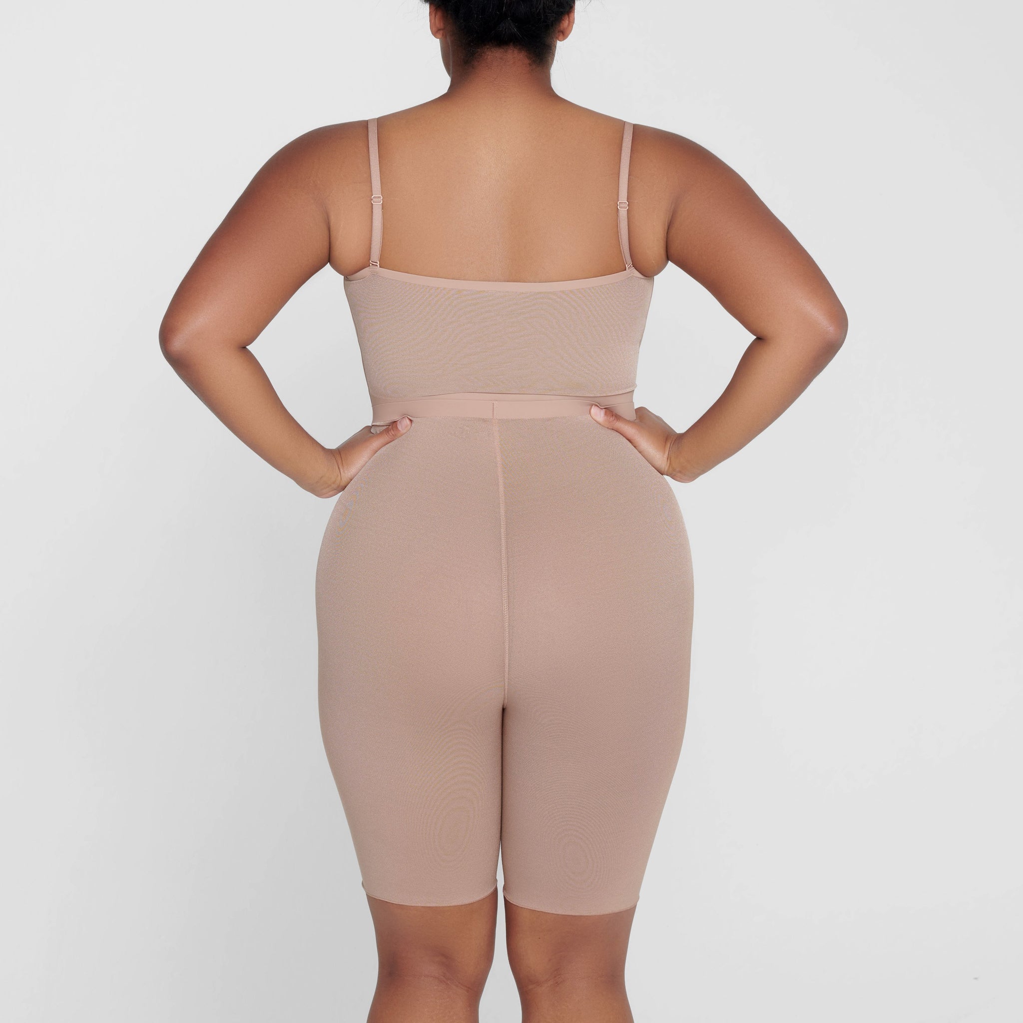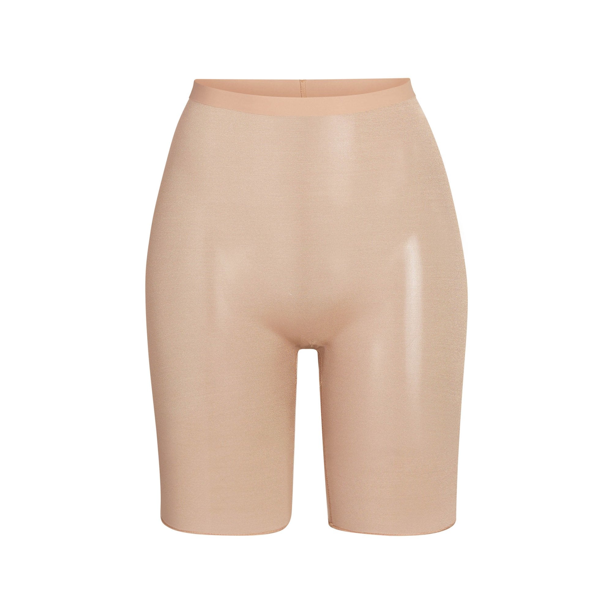 With its mid-thigh length and high-waist rise, this sheer short holds in your core, smooths your thighs, and shapes and lifts your butt. Its silky construction makes this piece an unexpected essential for enhancing your body’s natural shape.