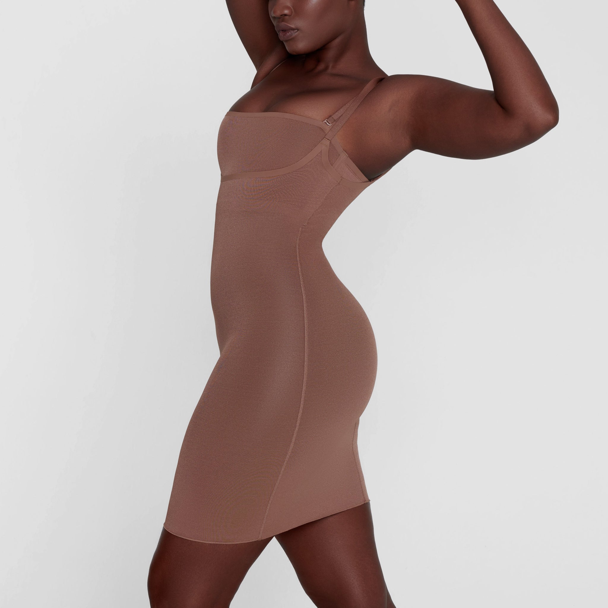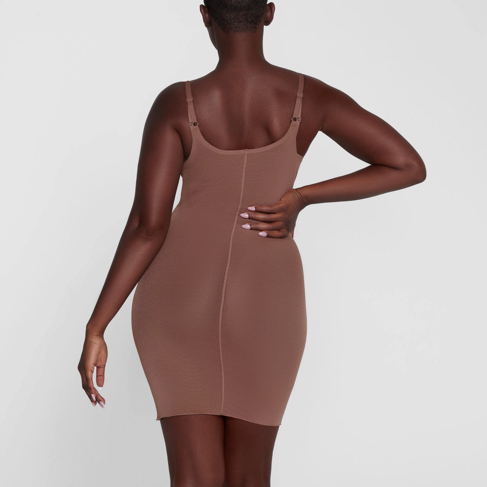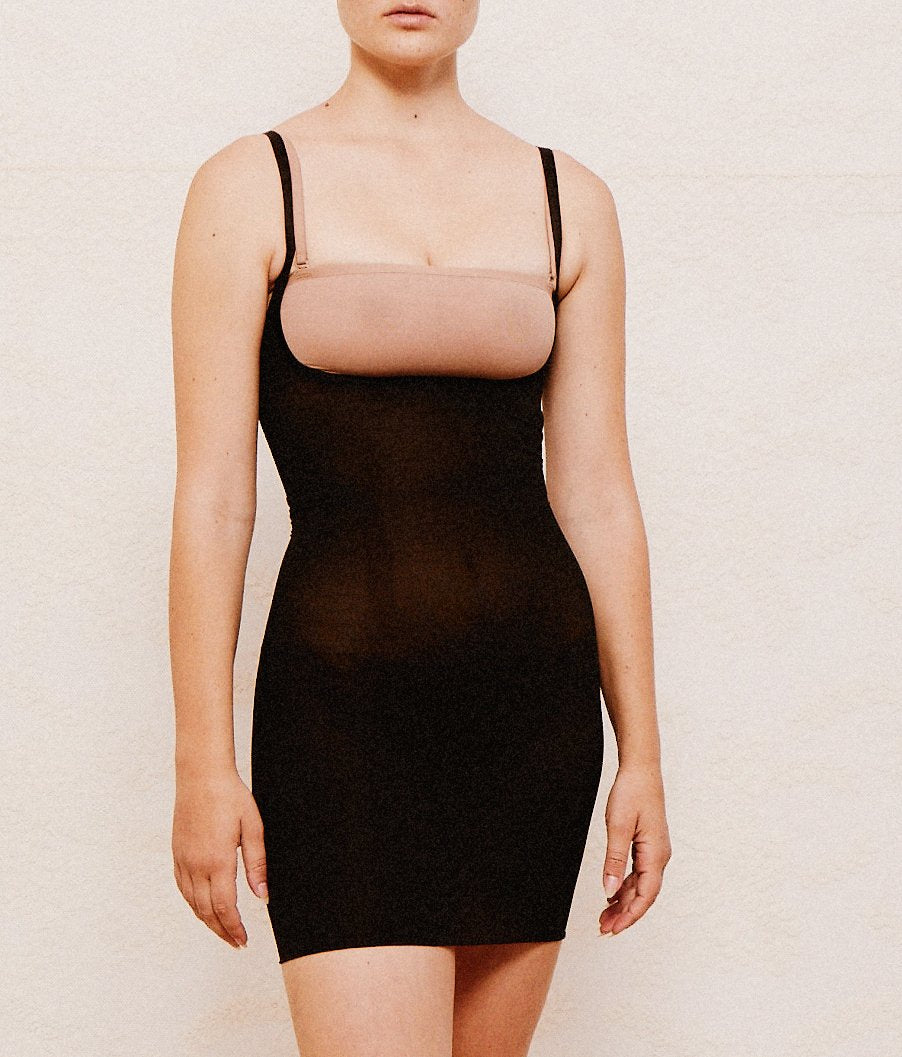 Invisible under everything, this sheer slip holds in your core while shaping your butt. Its silky smooth construction and mid-thigh length make this sheer bodysuit a sensual necessity for enhancing your body’s natural shape.