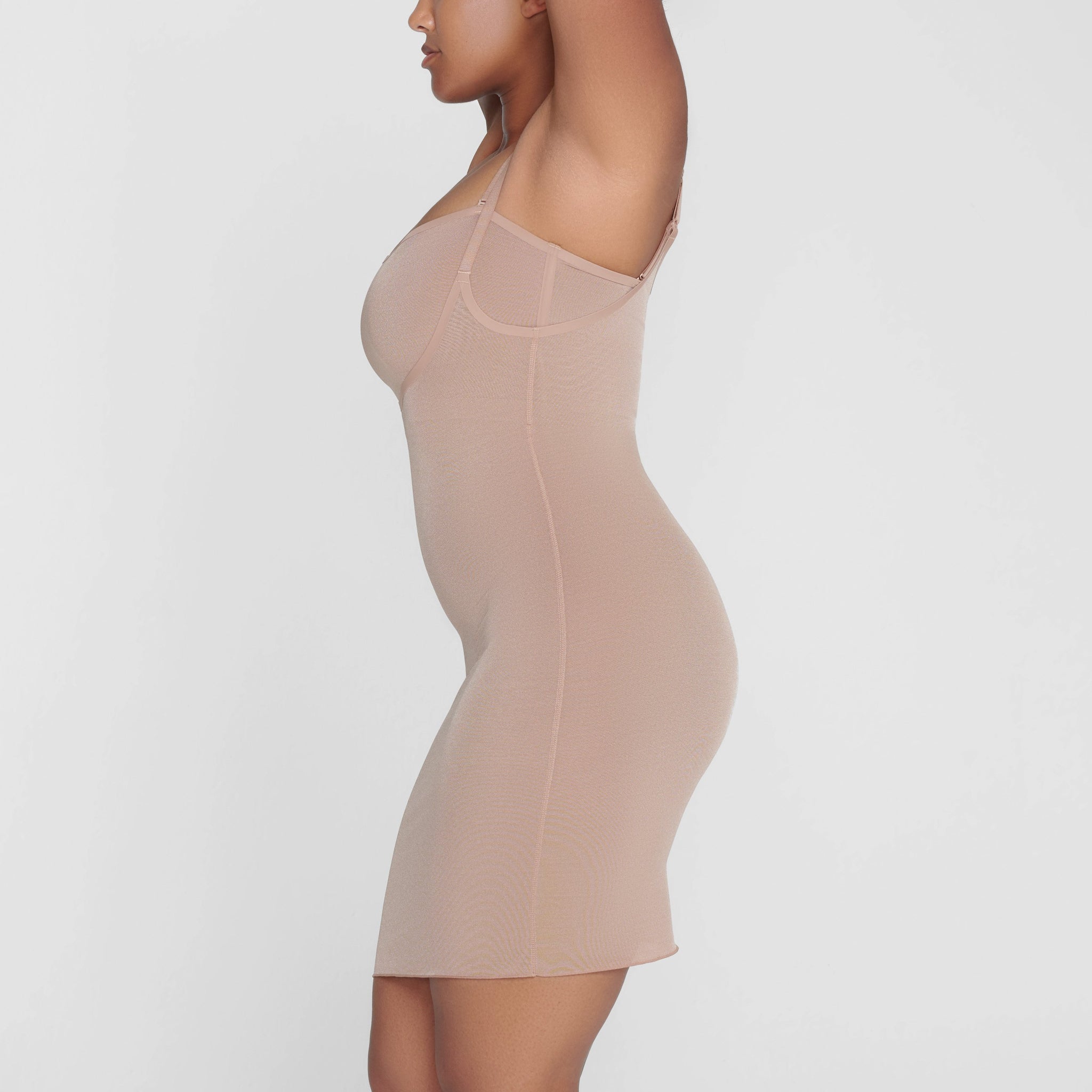 Invisible under everything, this sheer slip holds in your core while shaping your butt. Its silky smooth construction and mid-thigh length make this sheer bodysuit a sensual necessity for enhancing your body’s natural shape.