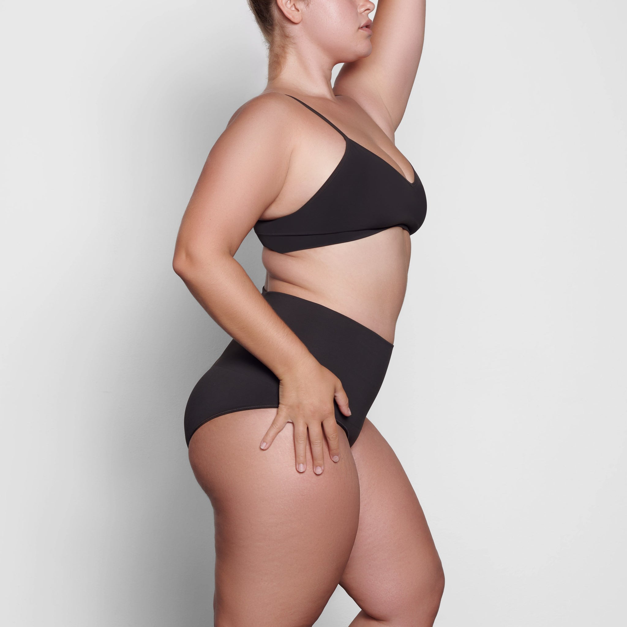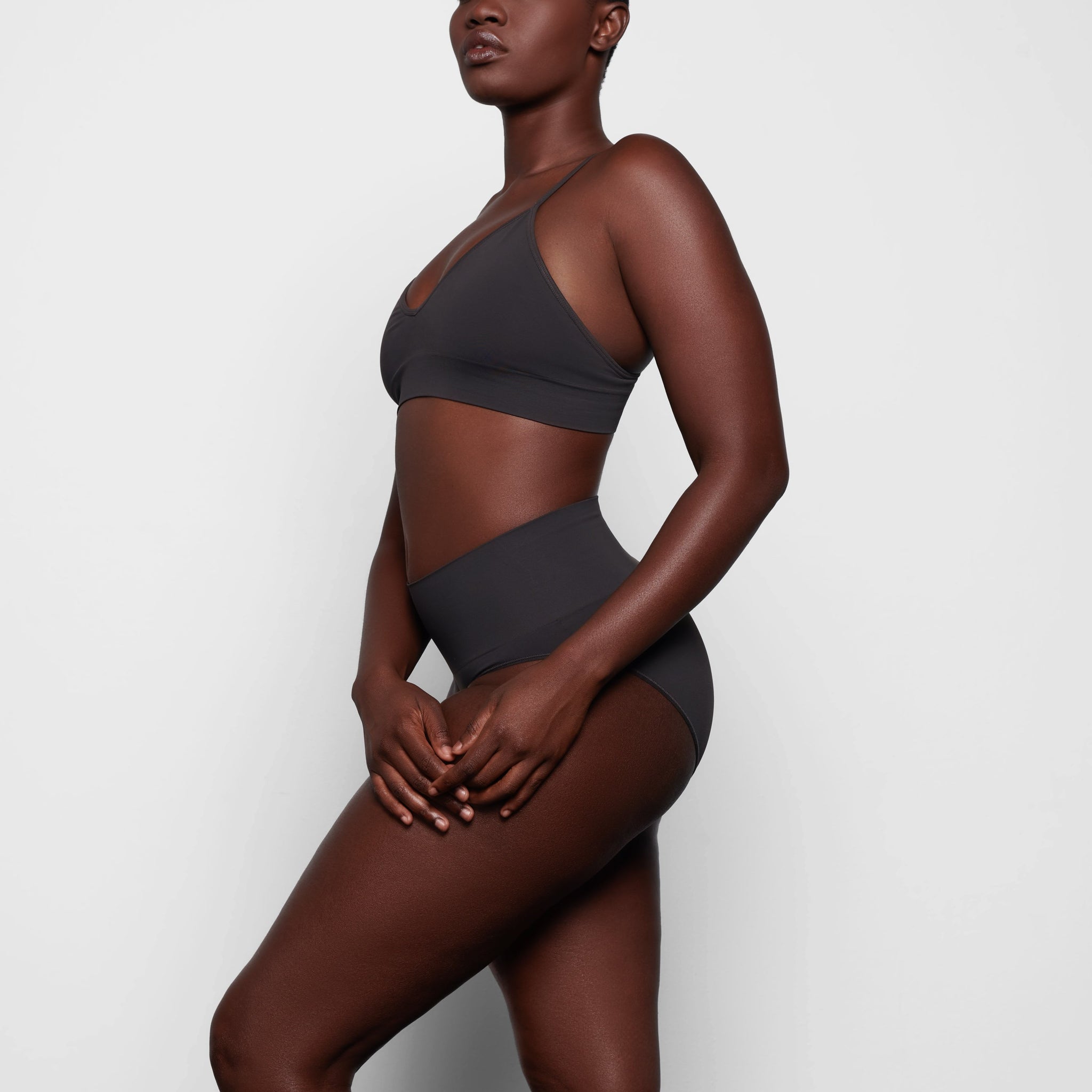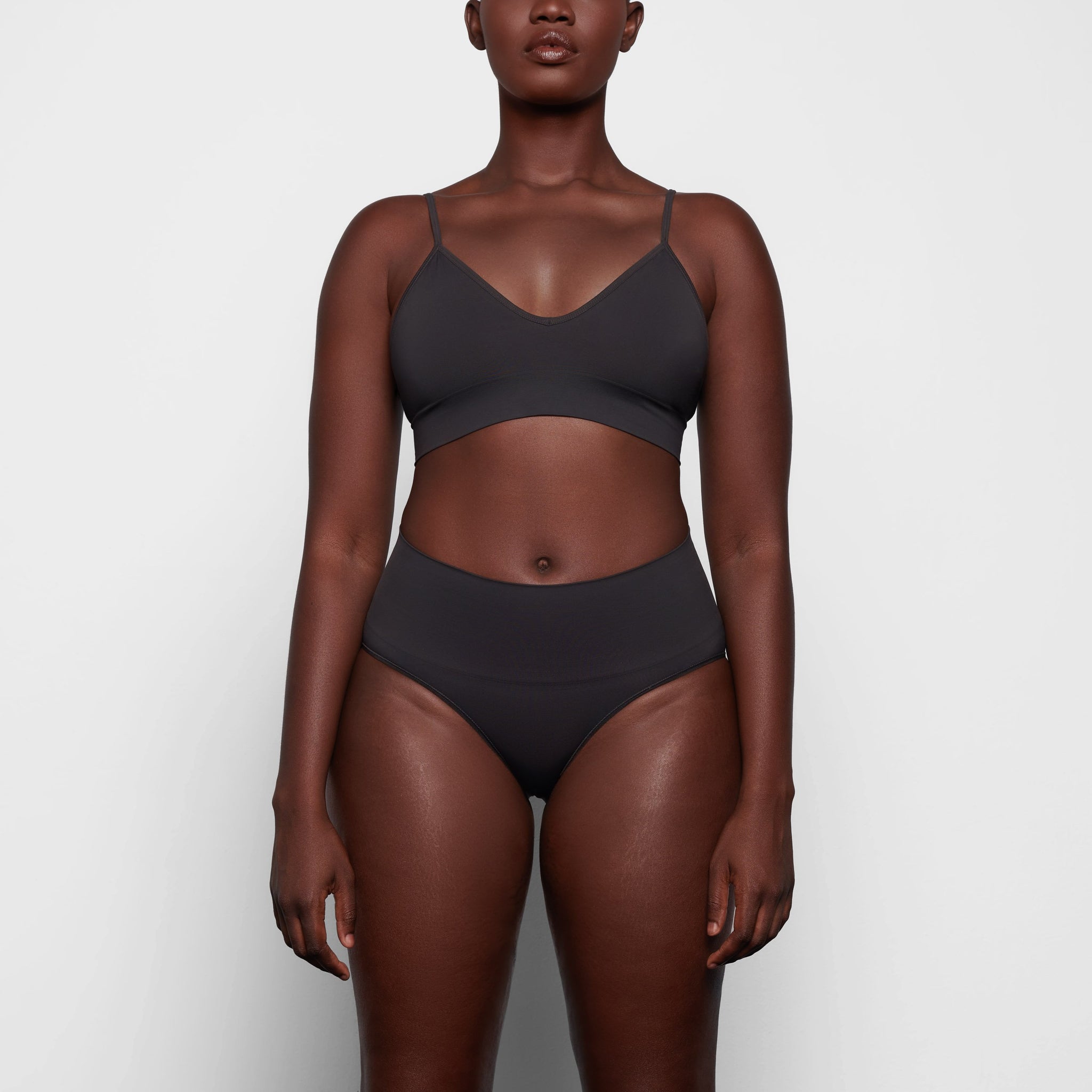 The Smoothing Bralette is a sporty, deep v-neck style with a supportive hold that lifts and accentuates your bust. This bralette can be worn alone as loungewear or as a low-impact activewear piece.