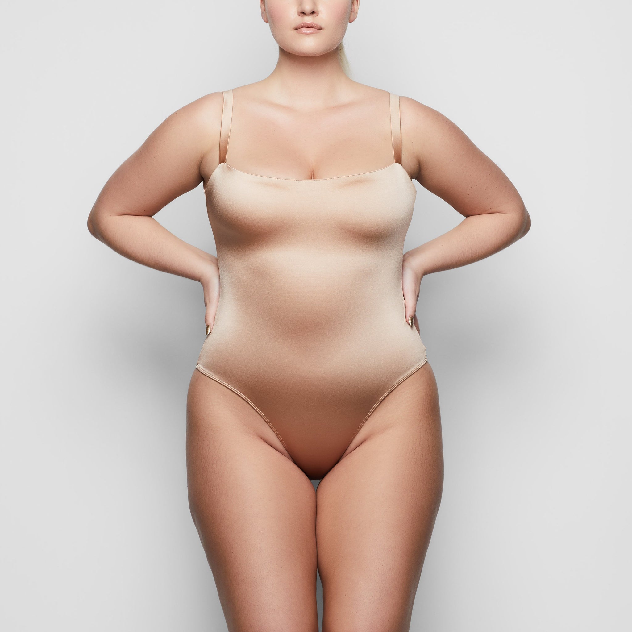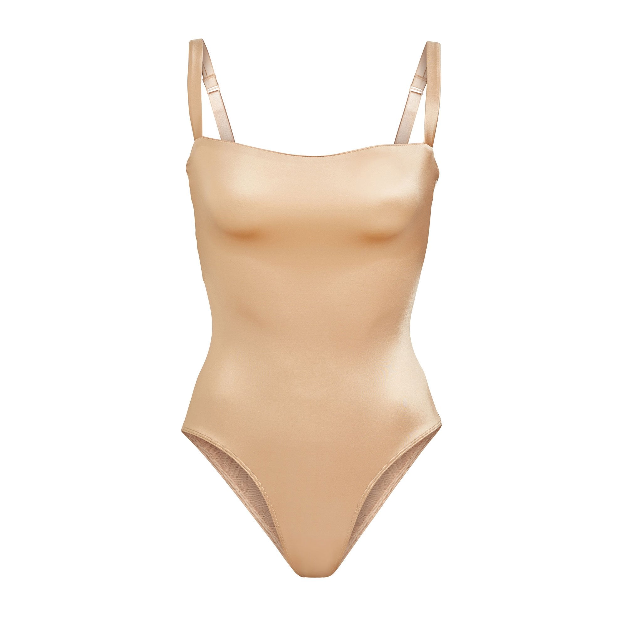 STRETCH SATIN SMOOTHING BODYSUIT | HONEY