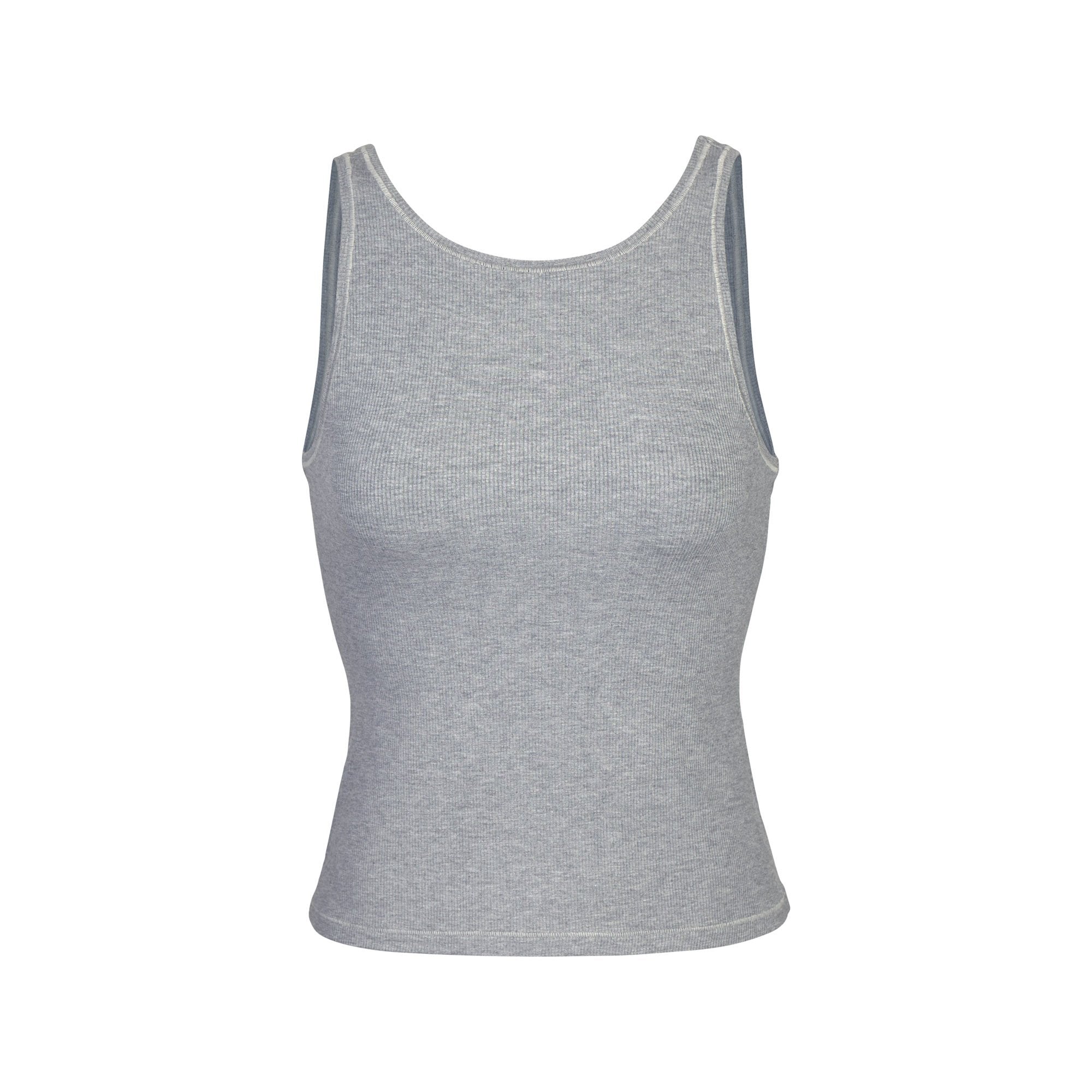 The Summer Sleep Rib Tank is made of breathable ribbed modal fabric that is perfect for lounging or sleeping. High neck with a low scoop back for a flattering fit.