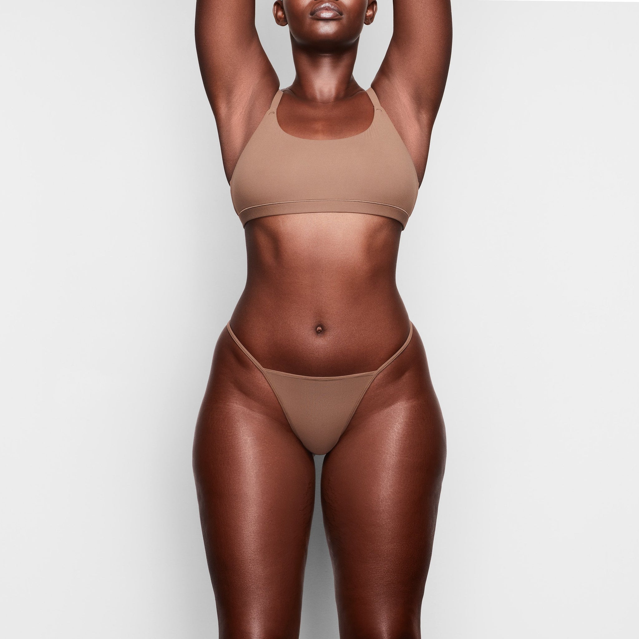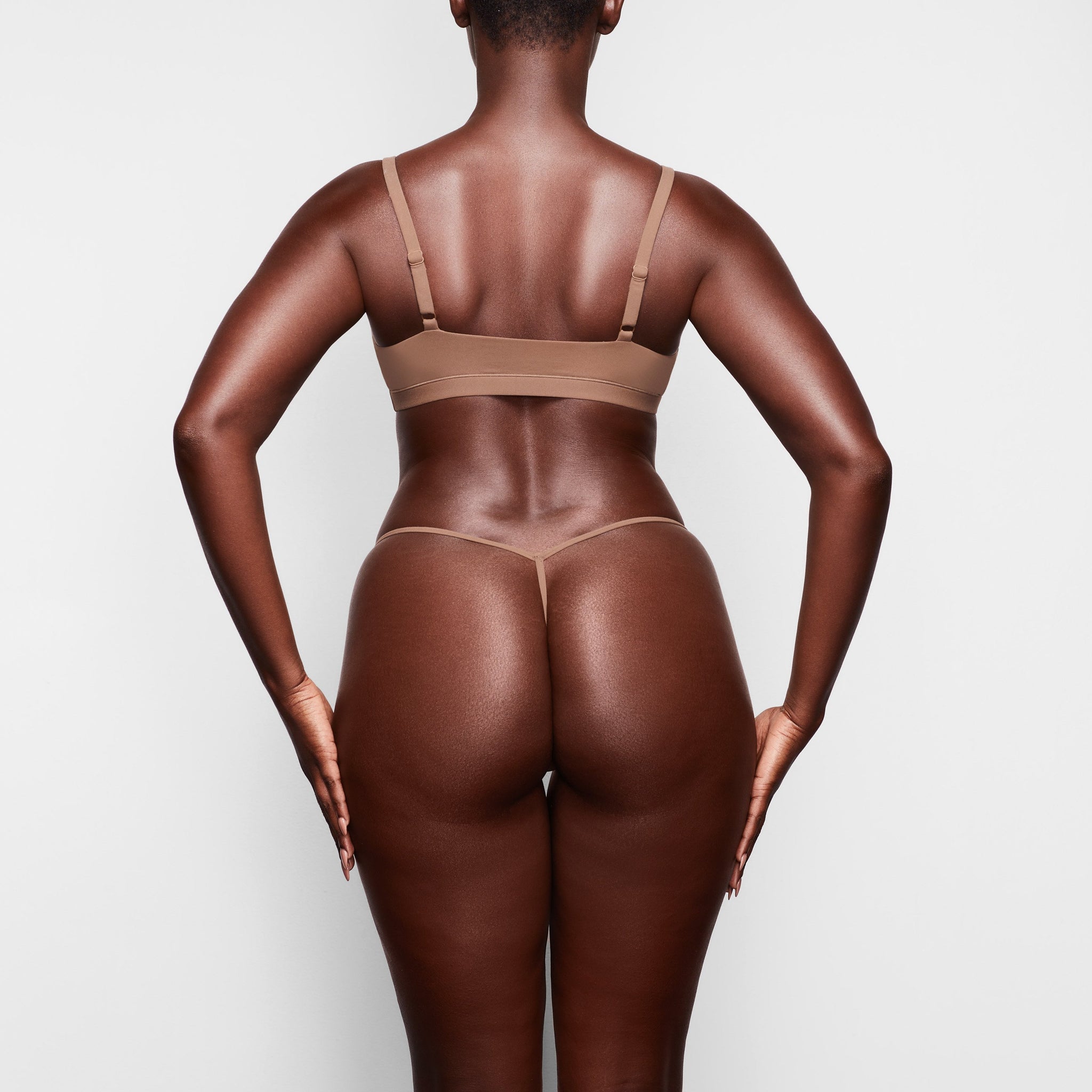 This T-back thong allows for zero-show-through panty lines and barely-there. Superior stretch flatters all body types and never cuts into the skin, while moisture-wicking, quick-dry fabric is perfect for working out.